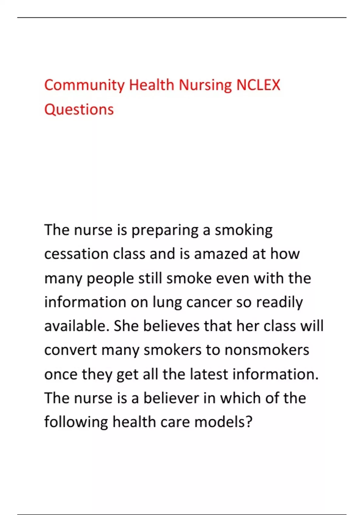 - Community Health Nursing NCLEX