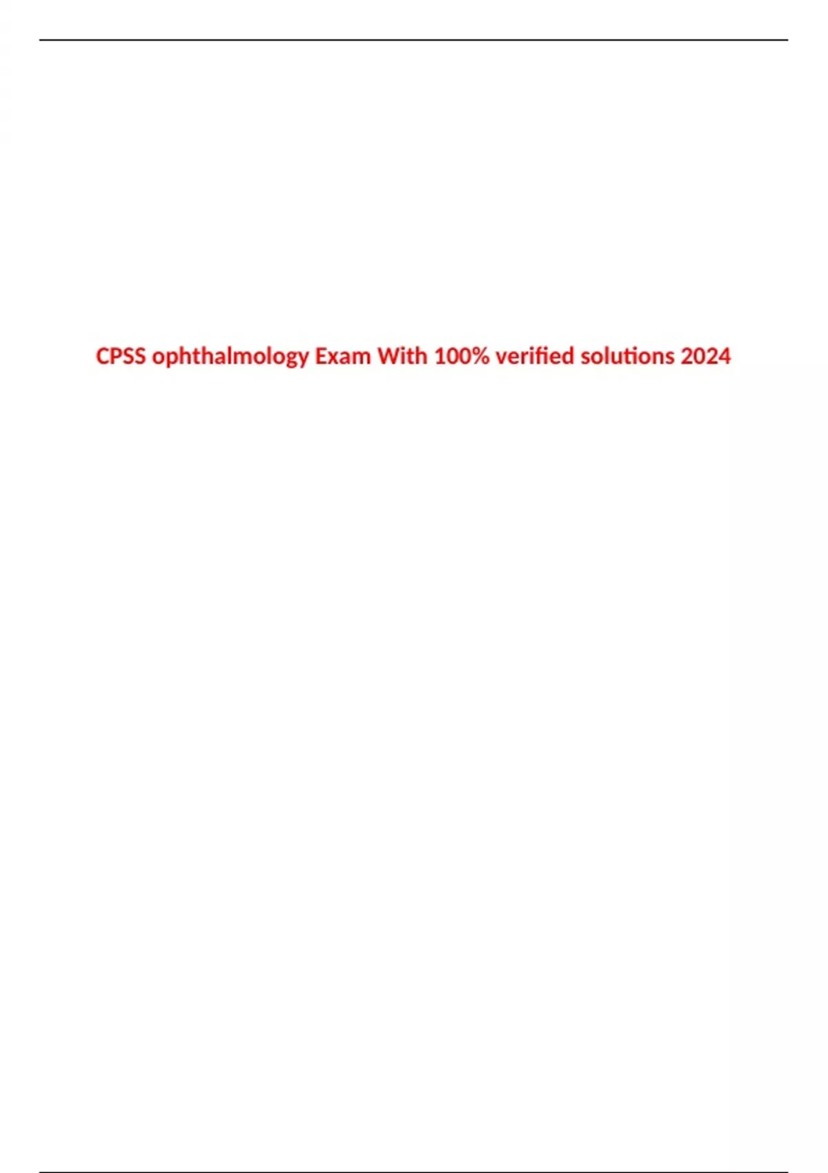CPSS ophthalmology Exam With 100% verified solutions 2024