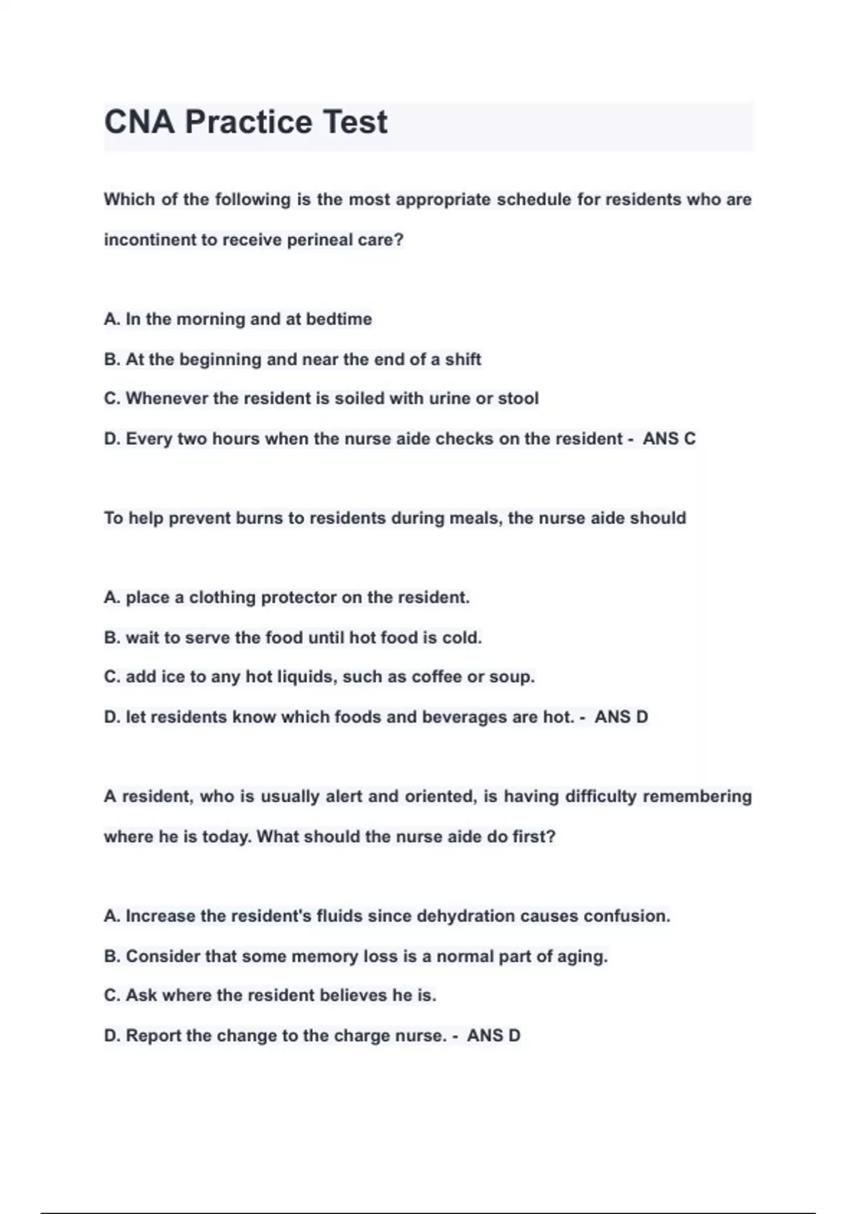 CNA Practice Test Questions & Answers 2024(A+GRADED 100%VERIFIED)