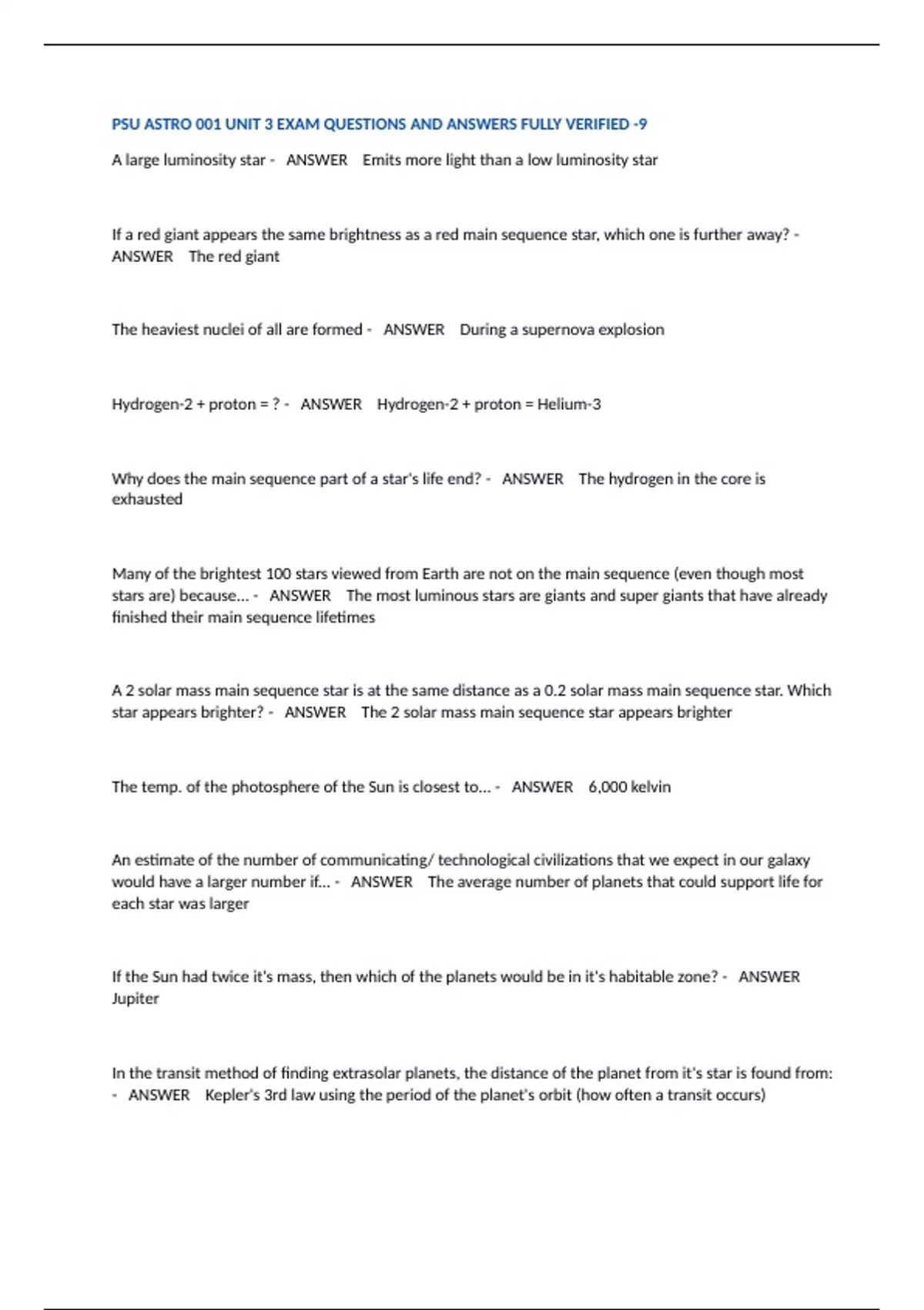 PSU ASTRO 001 UNIT 3 EXAM QUESTIONS AND ANSWERS FULLY VERIFIED -9