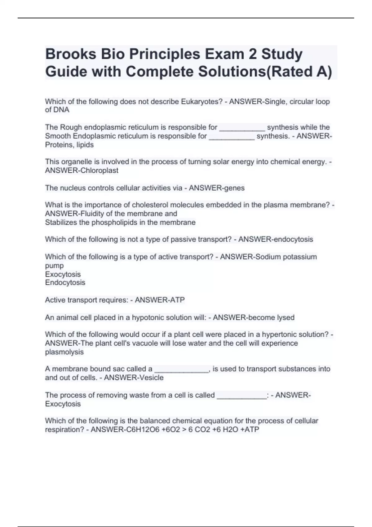 Brooks Bio Principles Exam 2 Study Guide with Complete Solutions(Rated A)
