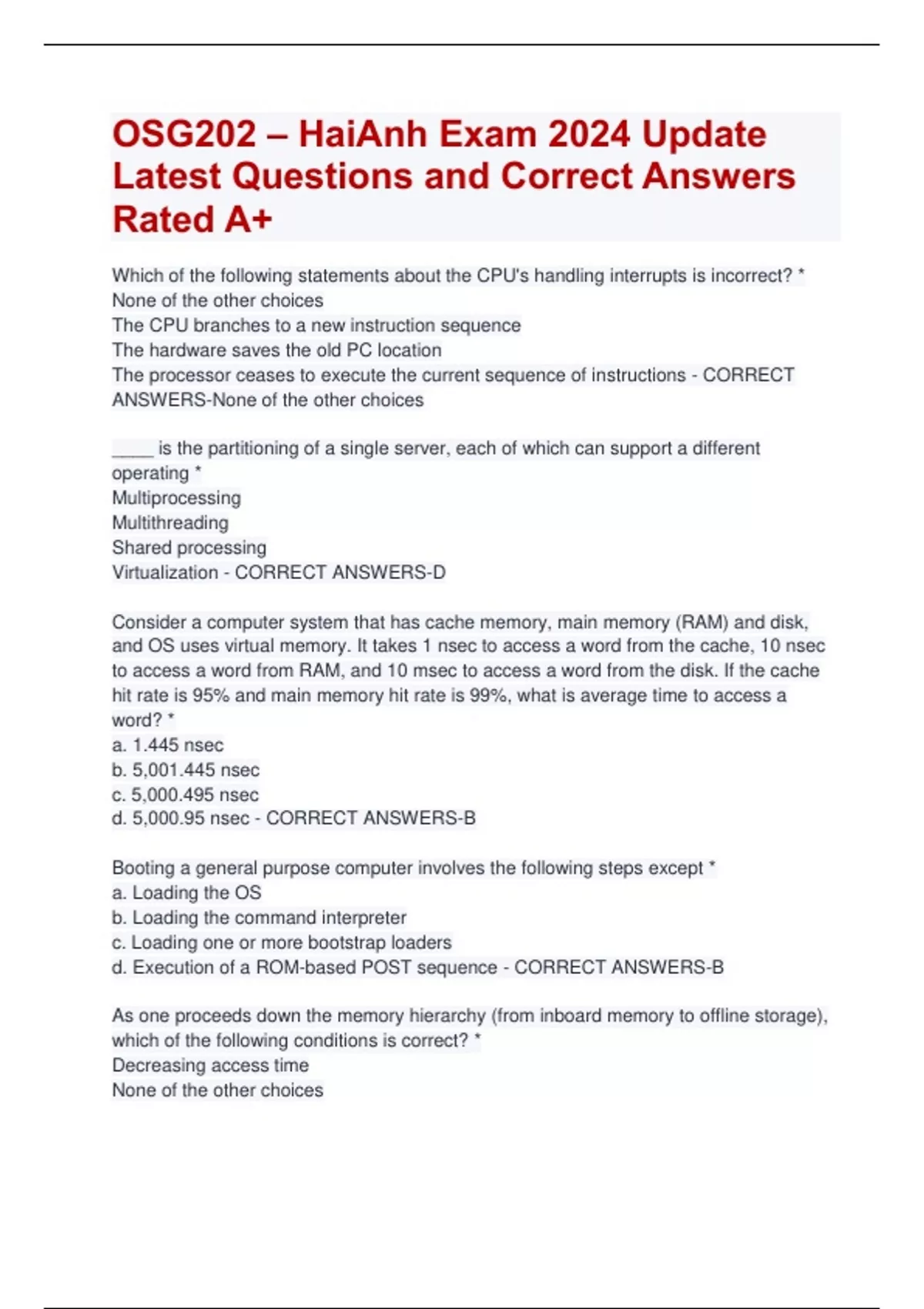 OSG202 – HaiAnh Exam 2024 Update Latest Questions and Correct Answers Rated A+