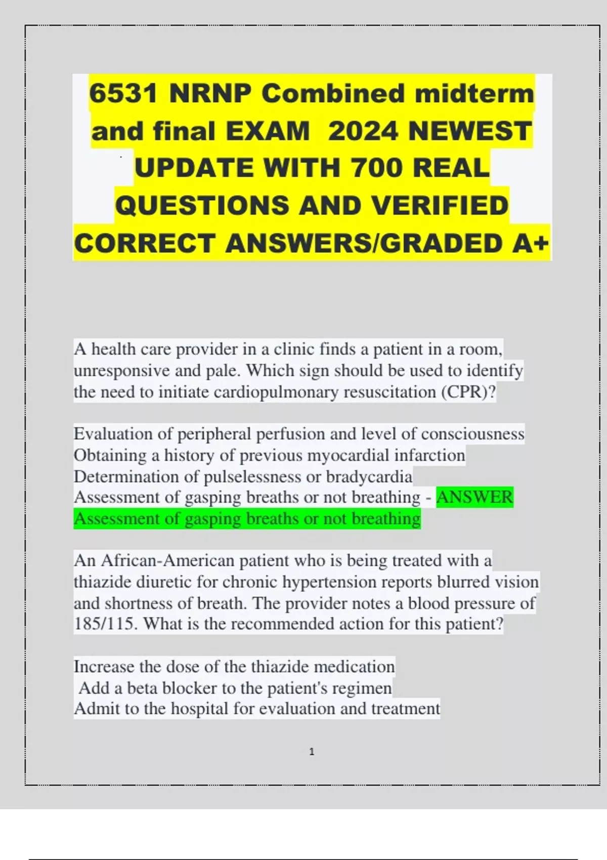 6531 NRNP Combined midterm and final EXAM 2024 NEWEST UPDATE WITH 700 REAL QUESTIONS AND VERIFIED CORRECT ANSWERS/GRADED A+