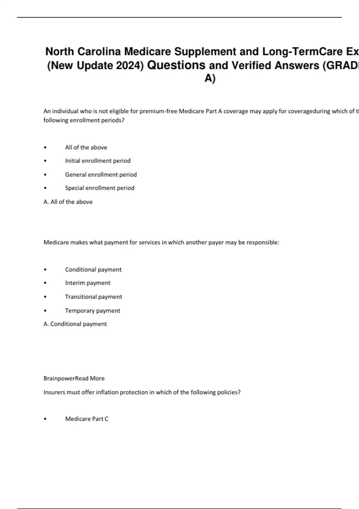 North Carolina Medicare Supplement and Long-Term Care Exam (New Update 2024) Questions and Verified Answers (GRADED A)