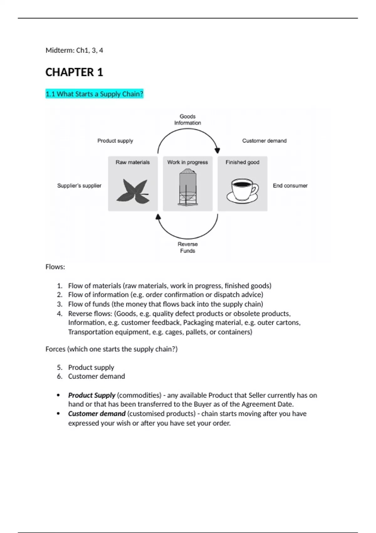 1. Flow of materials (raw materials, work in progress, finished goods)