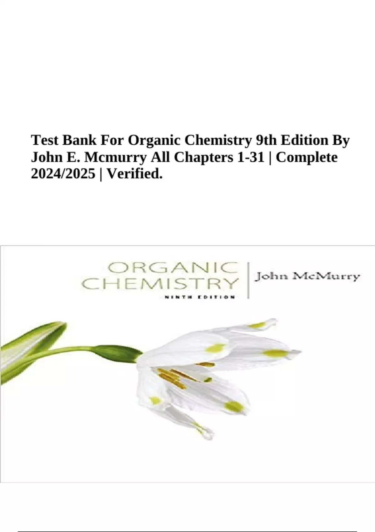 Test Bank For Organic Chemistry 9th Edition By John E. Mcmurry All Chapters 1-31 | Complete 2024/2025 | Verified.