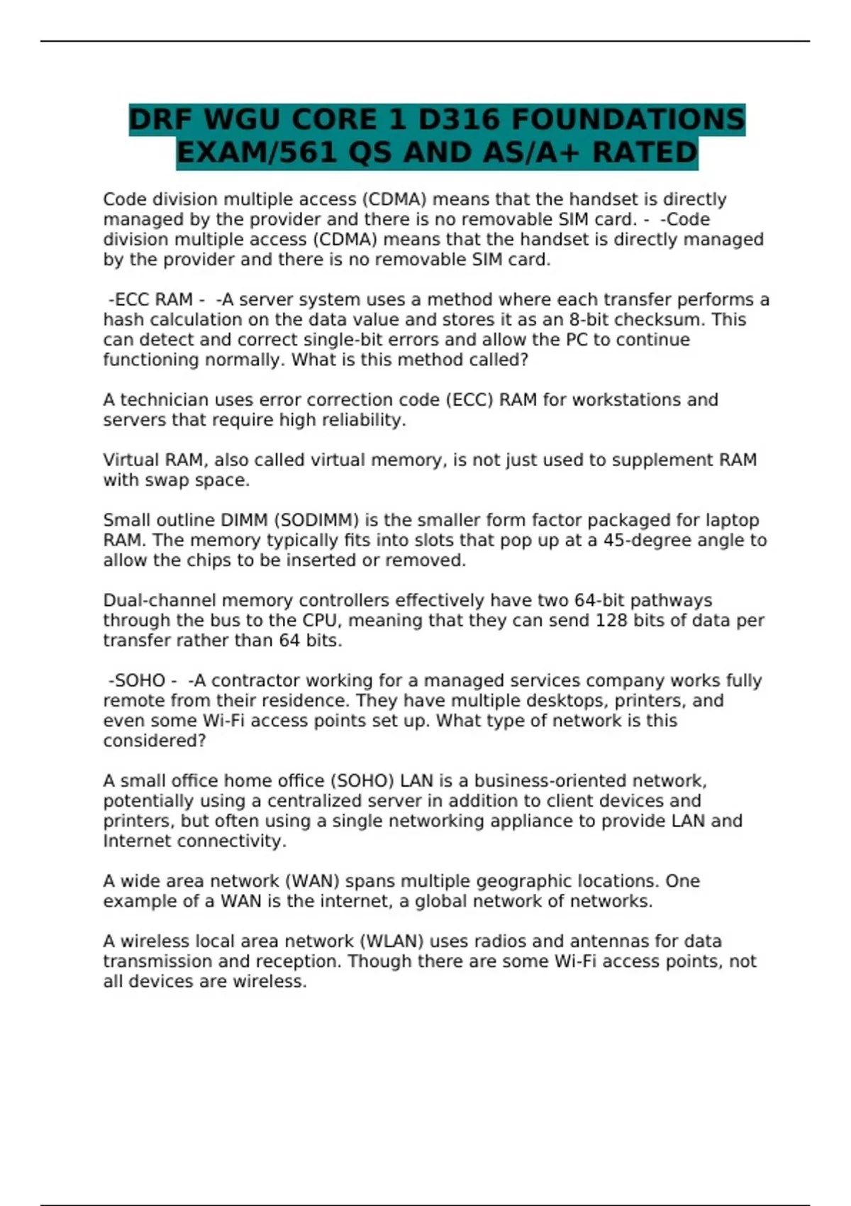 DRF WGU CORE 1 D316 FOUNDATIONS EXAM/561 QS AND AS/A+ RATED