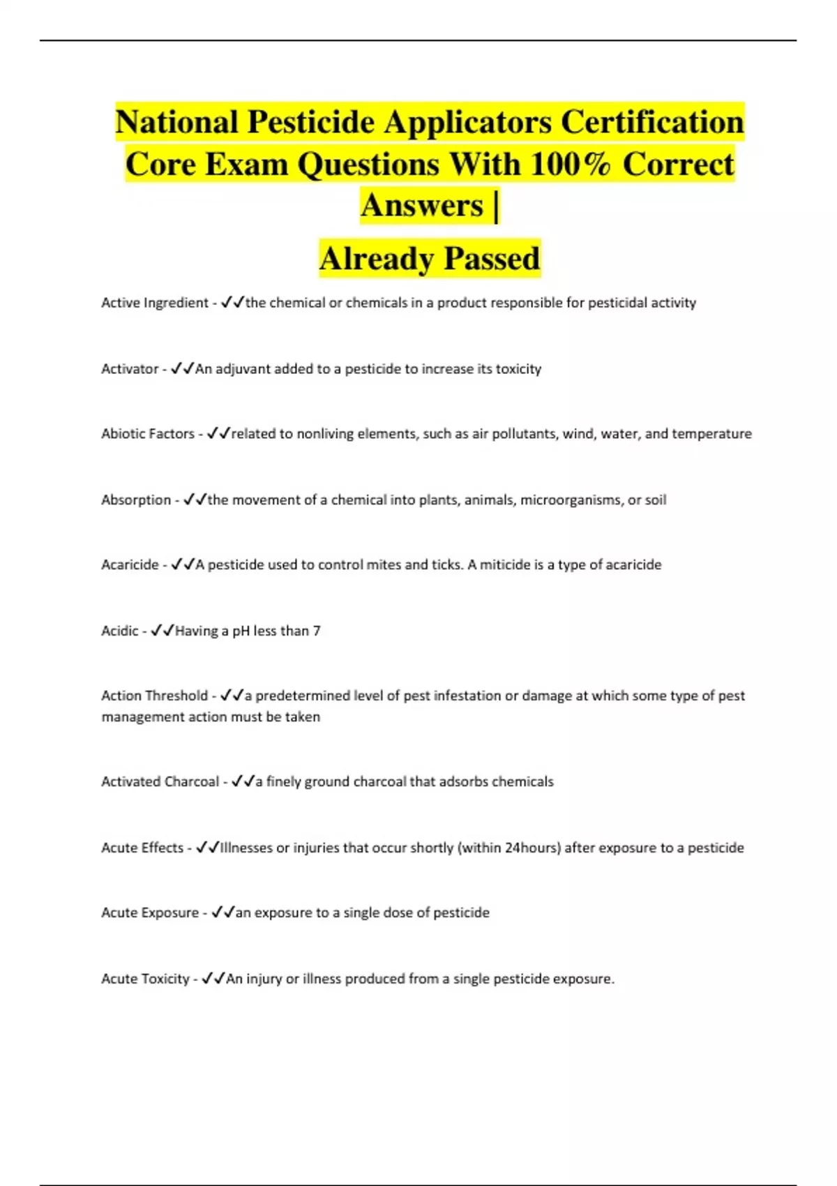 National Pesticide Applicators Certification Core Exam Questions With 100% Correct Answers | Already Passed