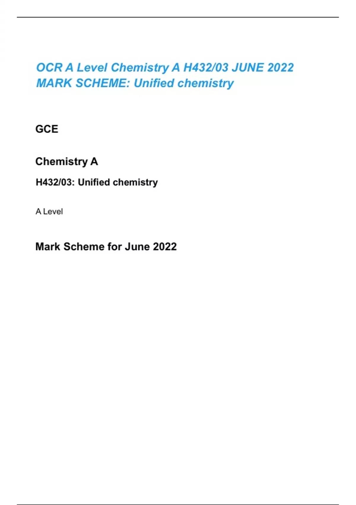 OCR A Level Chemistry A H432/03 JUNE 2022 MARK SCHEME: Unified chemistry