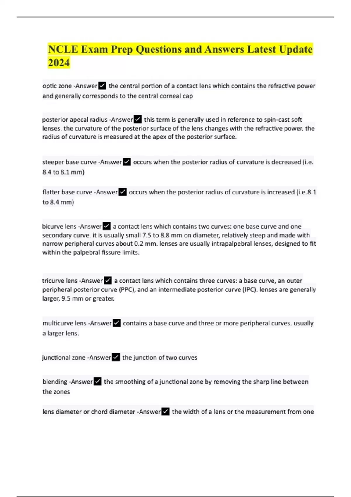 ncle exam prep questions and answers latest update