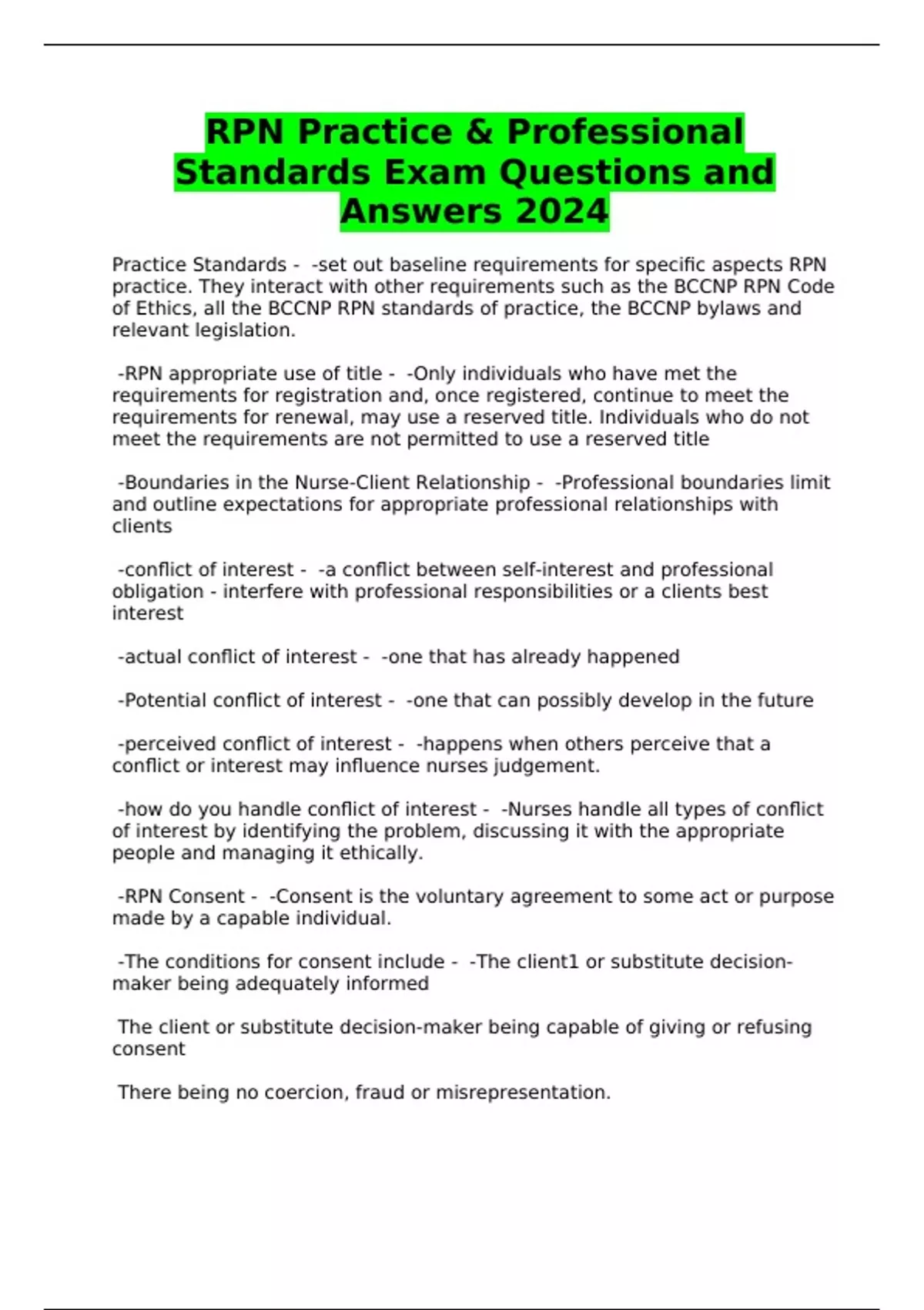 RPN Practice & Professional Standards Exam Questions and Answers 2024