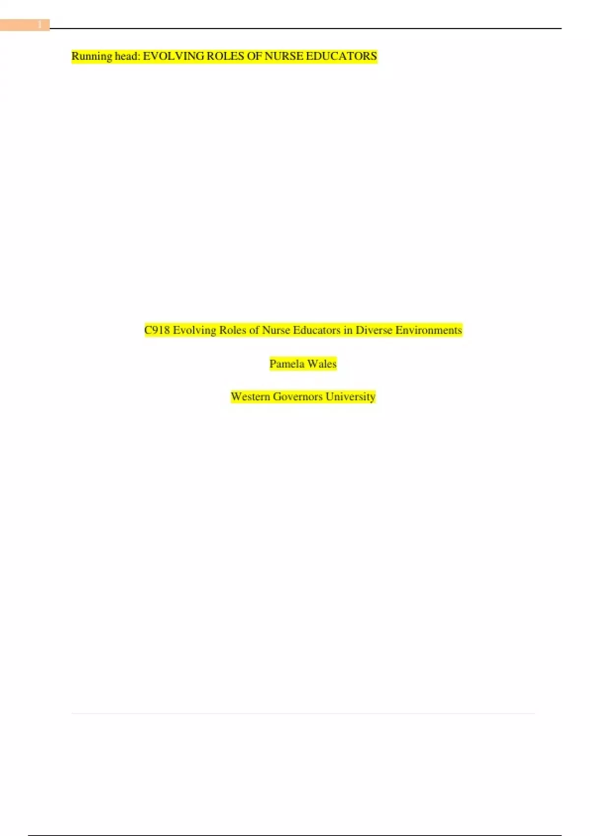 C918 Evolving Roles of Nurse Educators in Diverse Environments Pamela Wales essay
