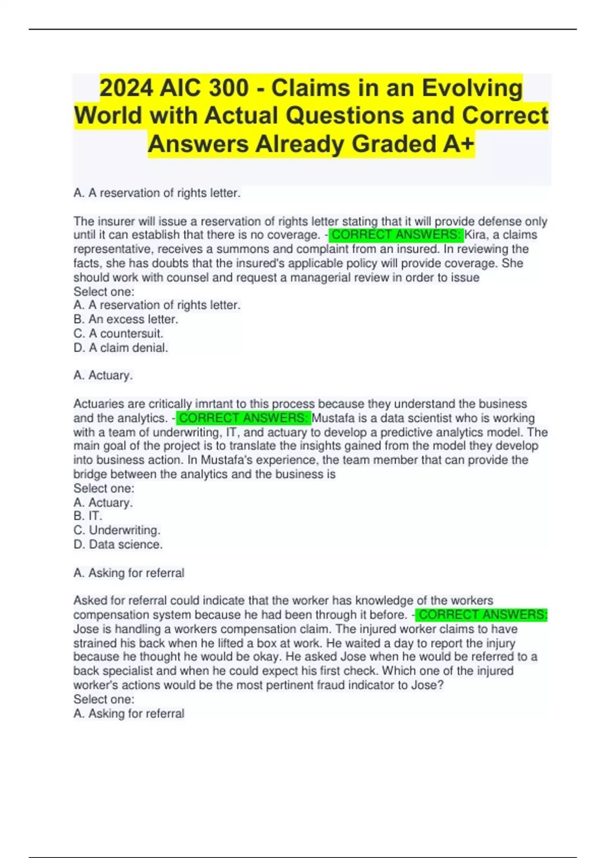 2024 AIC 300 - Claims in an Evolving World with Actual Questions and Correct Answers Already Graded A+
