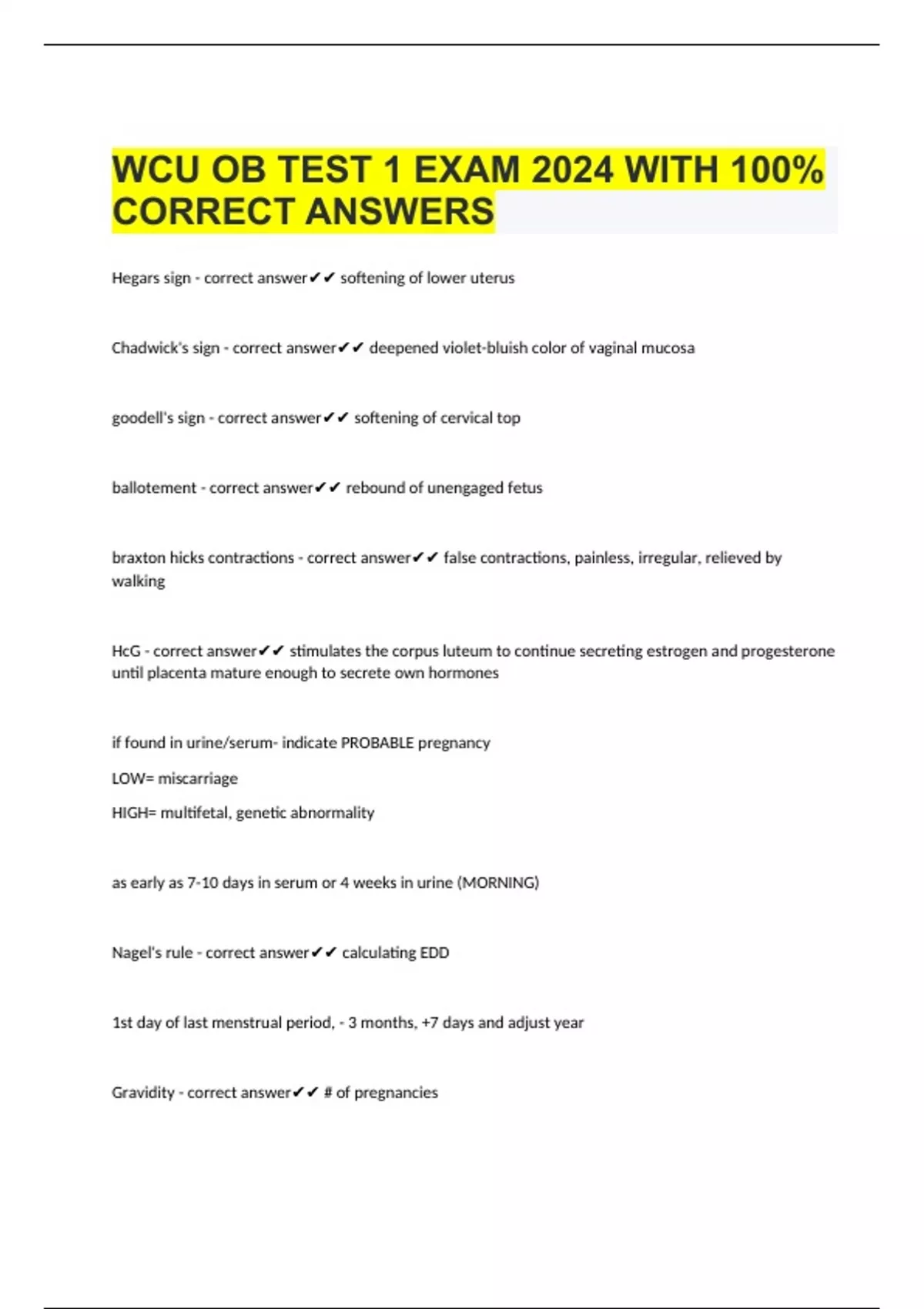 WCU OB TEST 1 EXAM 2024 WITH 100% CORRECT ANSWERS
