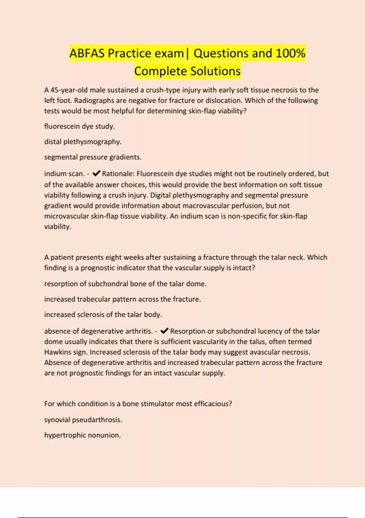 ABFAS Practice exam| Questions and 100% Complete Solutions