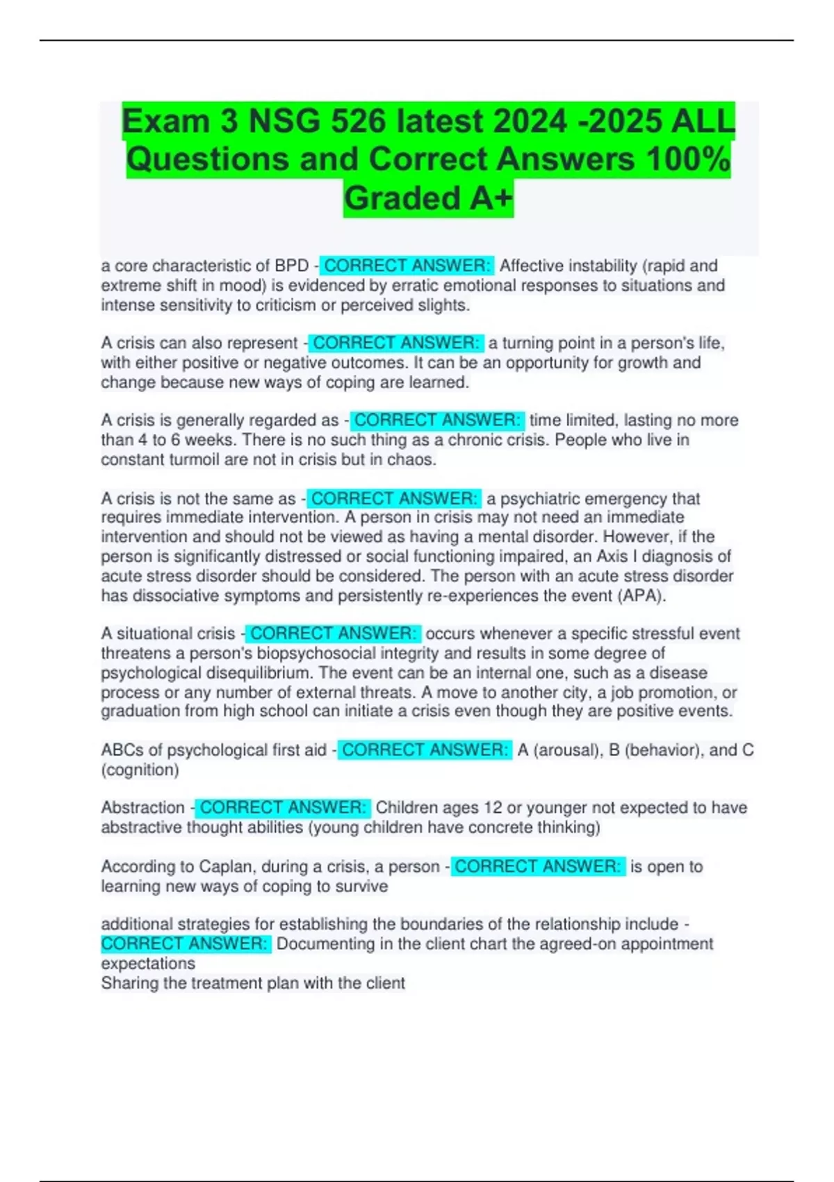 Exam 3 NSG 526 latest ALL Questions and Correct Answers 100% Graded A+