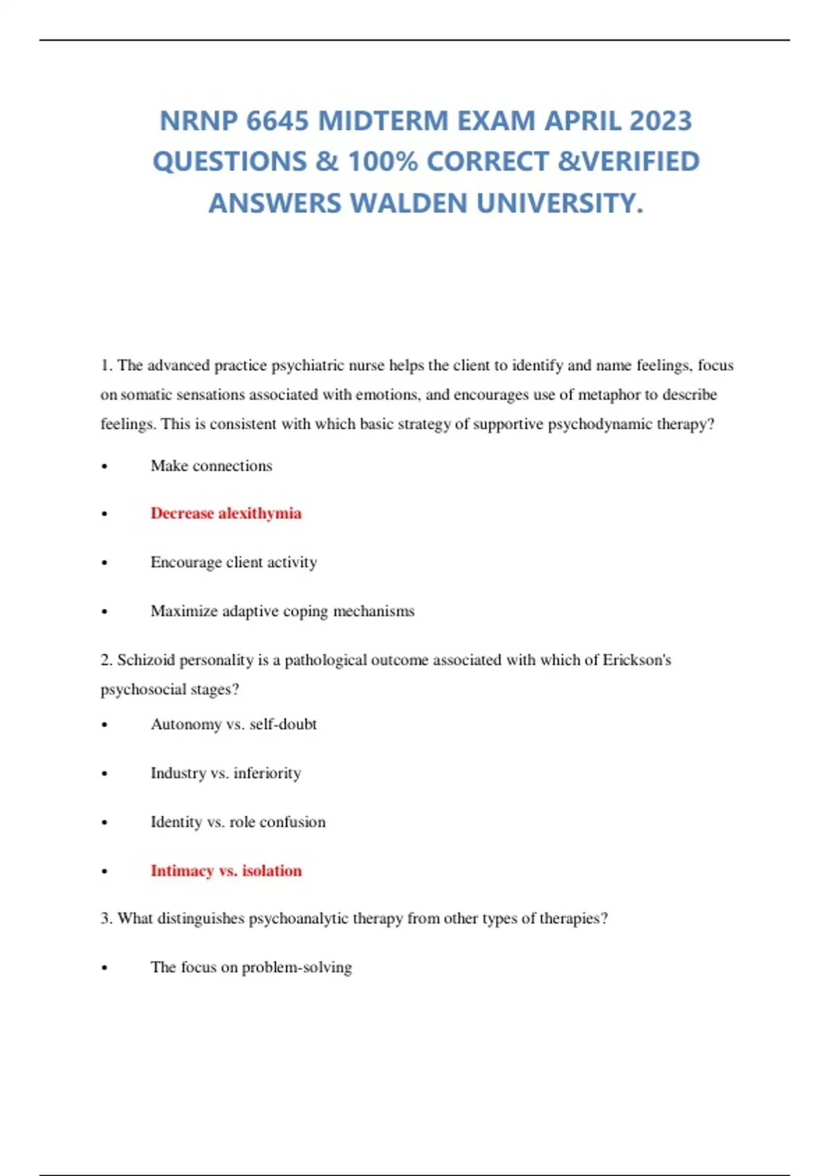 NRNP 6645 MIDTERM EXAM APRIL 2023 QUESTIONS & 100% CORRECT &VERIFIED ANSWERS WALDEN UNIVERSITY.
