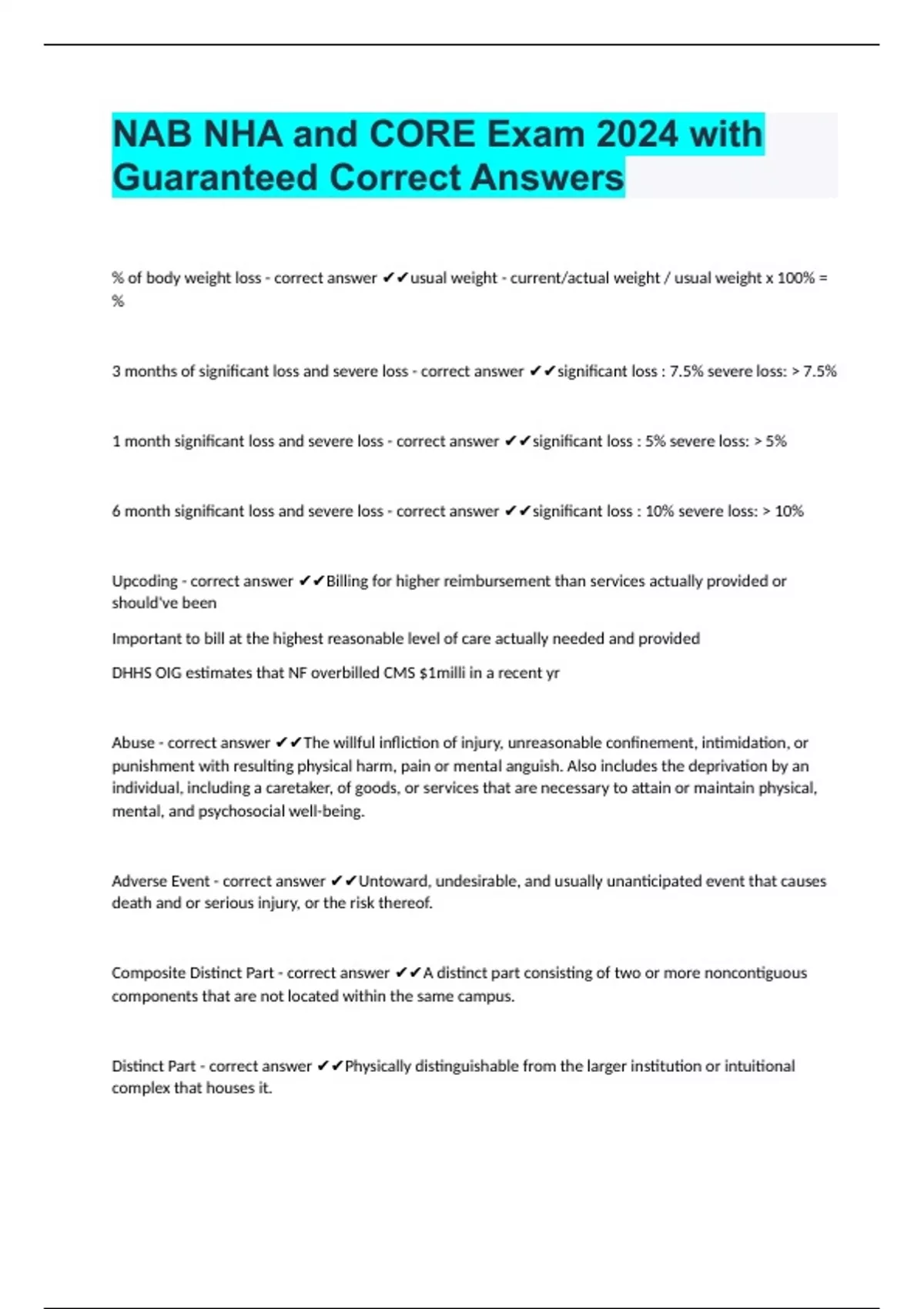 NAB NHA and CORE Exam 2024 with Guaranteed Correct Answers