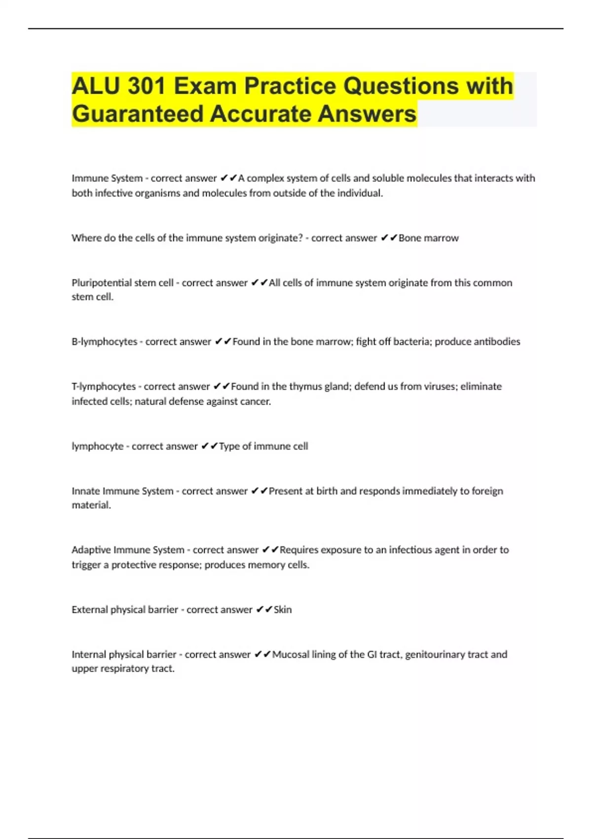 ALU 301 Exam Practice Questions with Guaranteed Accurate Answers
