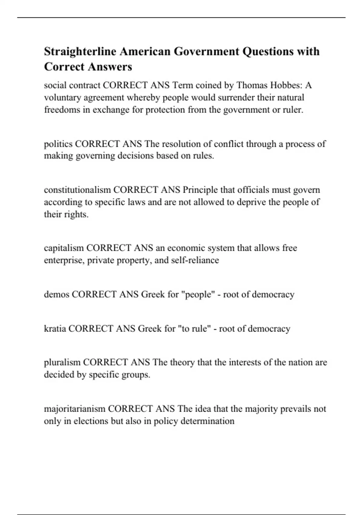 Straighterline American Government Questions with Correct Answers.