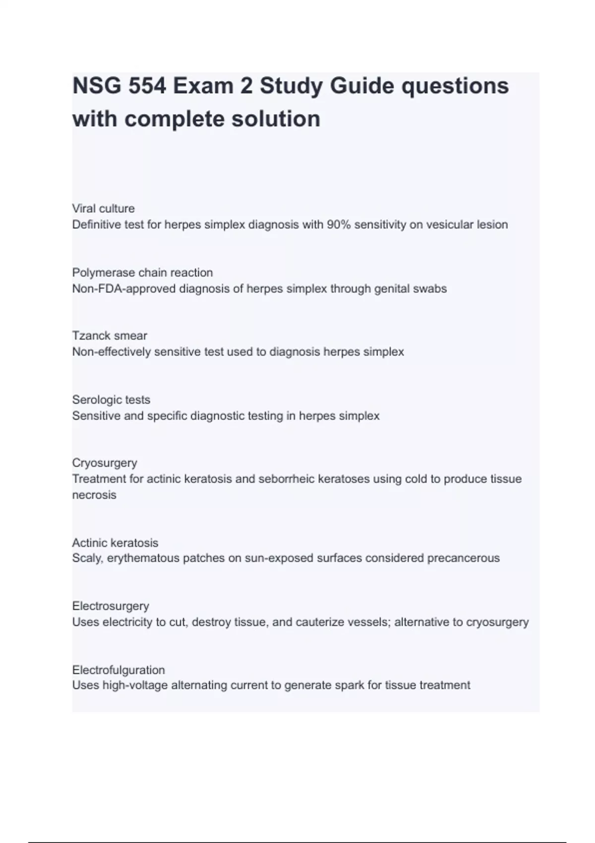 NSG 554 Exam 2 Study Guide questions with complete solution