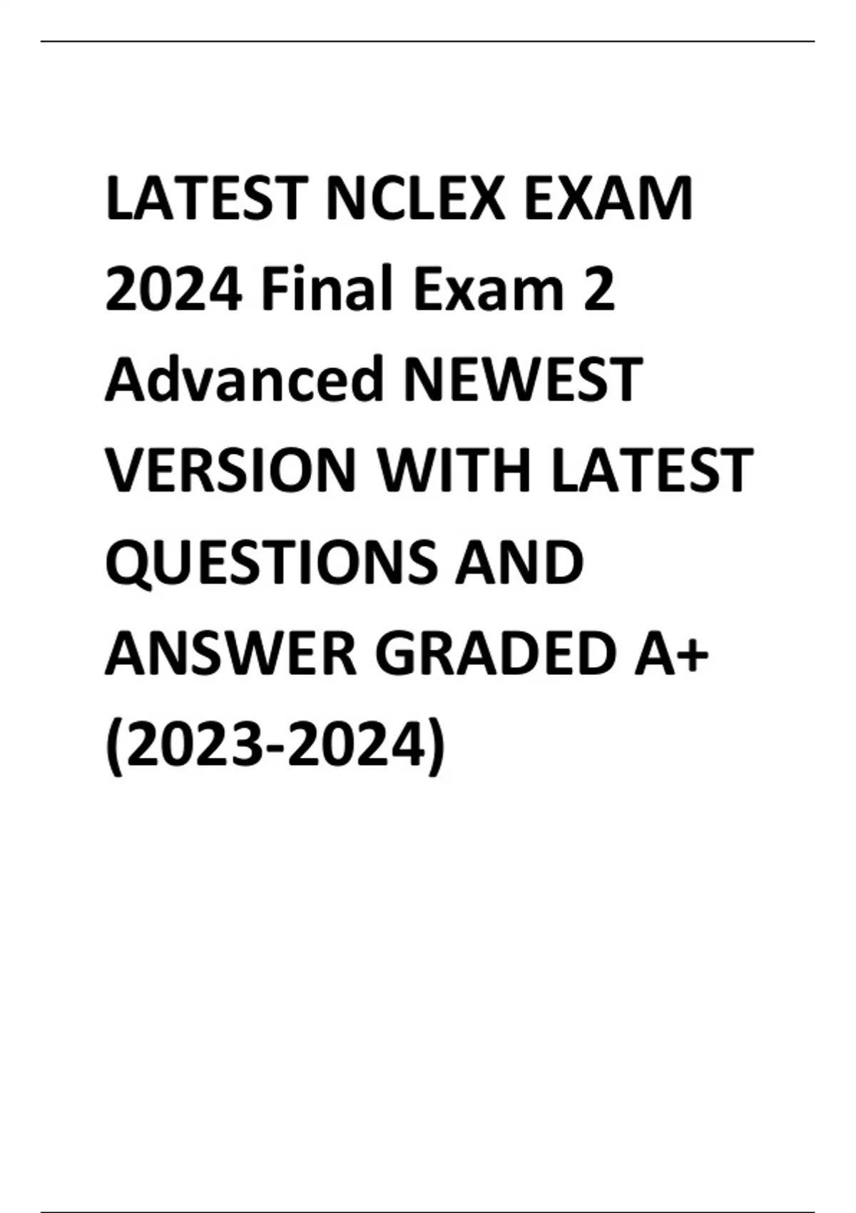 LATEST NCLEX EXAM 2024 Final Exam 2 Advanced NEWEST VERSION WITH LATEST QUESTIONS AND ANSWER GRADED A+ ()