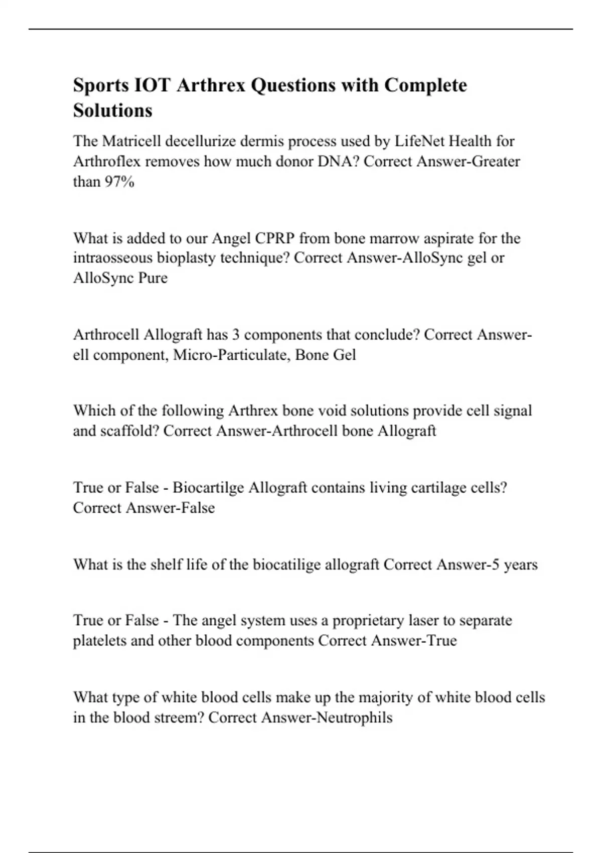 Sports IOT Arthrex Questions with Complete Solutions