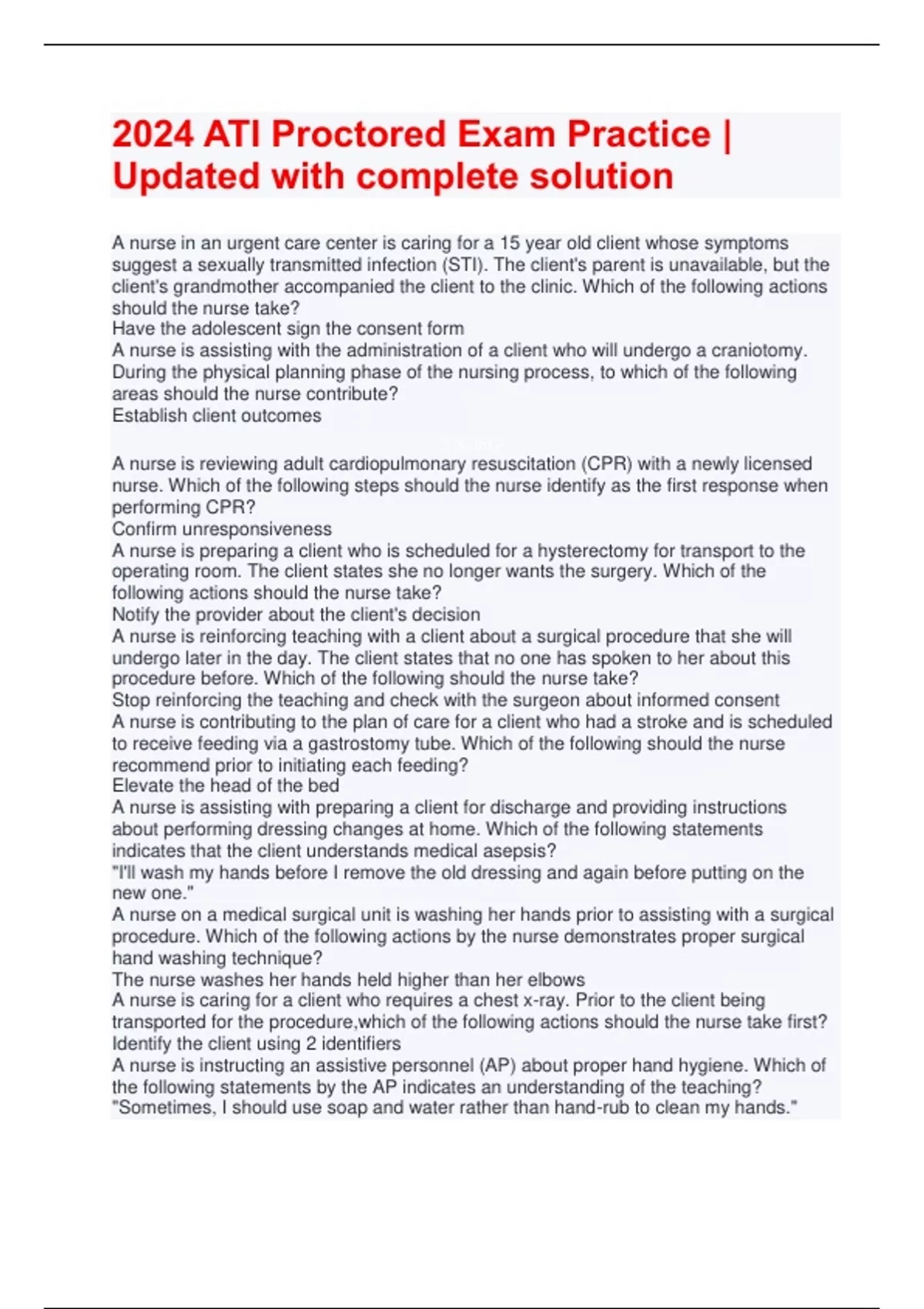 2024 ATI Proctored Exam Practice | Updated with complete solution