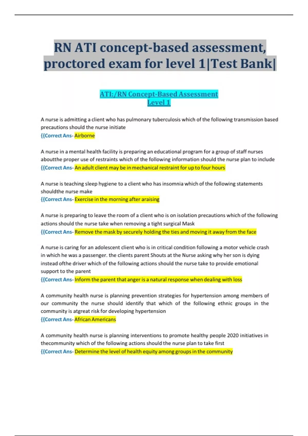 RN ATI concept-based assessment, proctored exam for level 1Test Bank