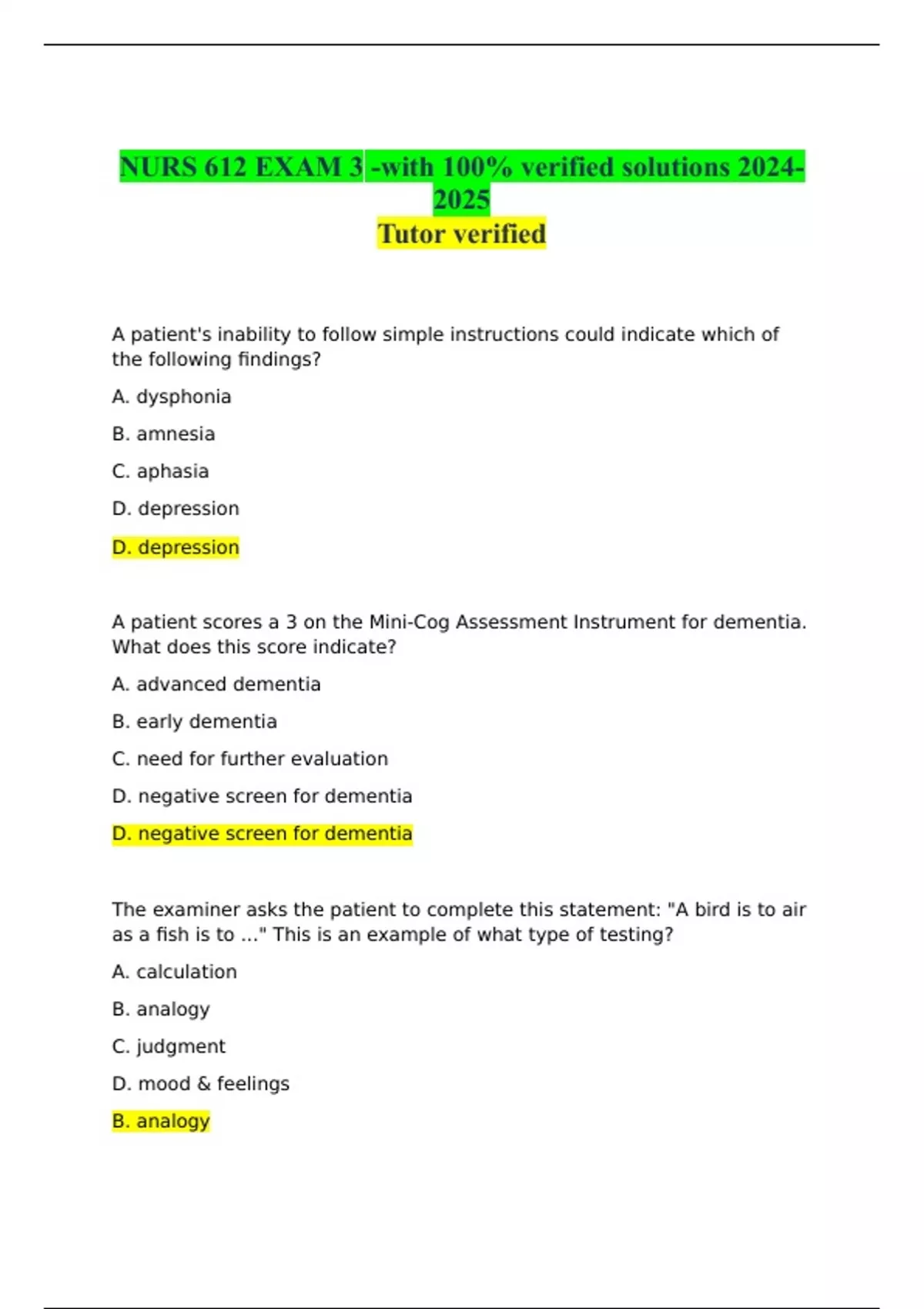 NURS 612 EXAM 3 -with 100% verified solutions