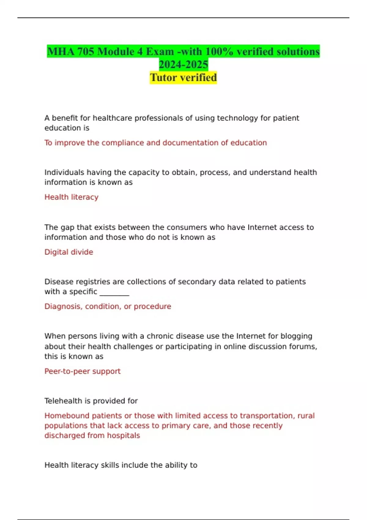 MHA 705 Module 4 Exam -with 100% verified solutions