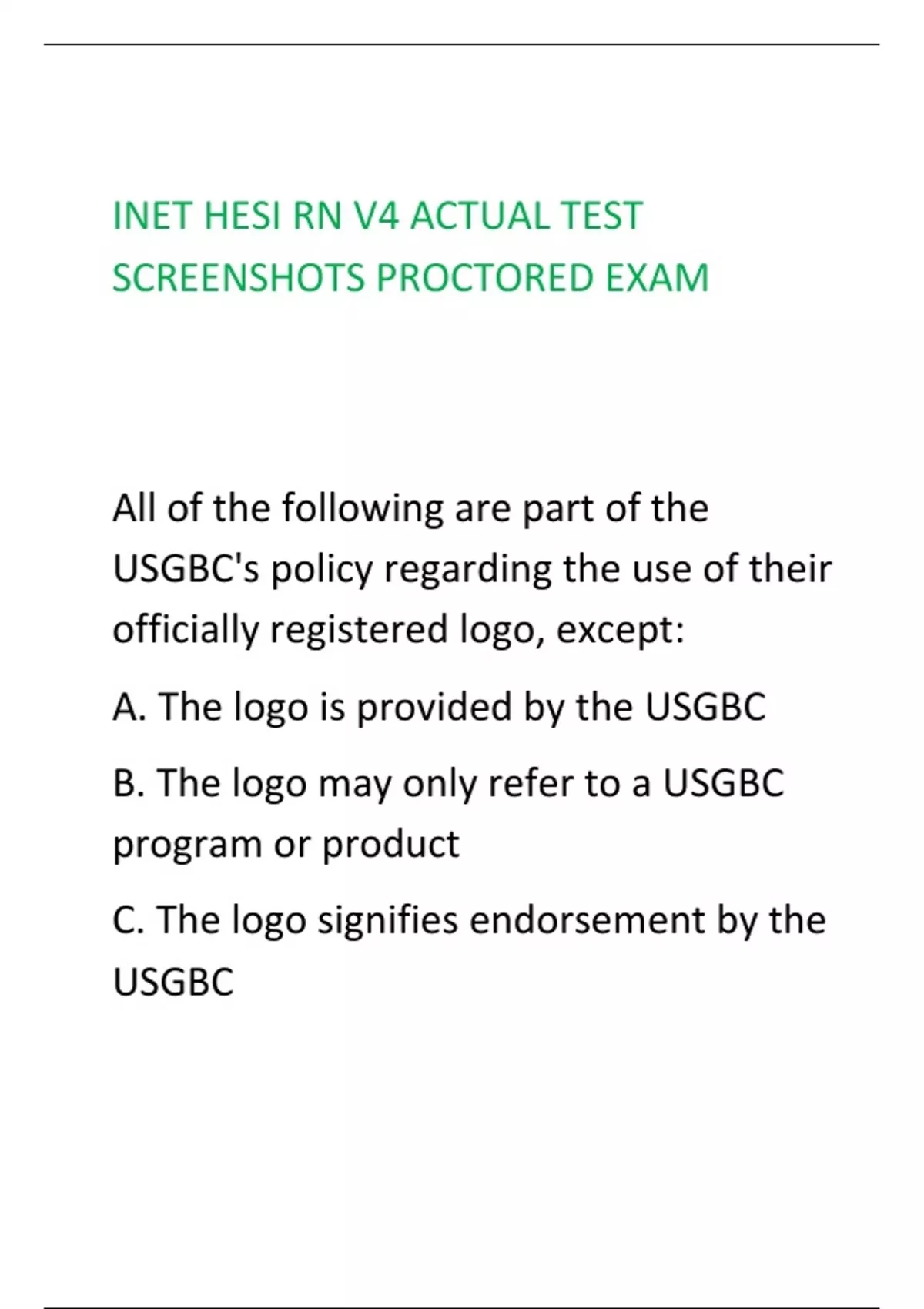 INET HESI RN V4 ACTUAL TEST SCREENSHOTS PROCTORED EXAM- LEED GA Practice Exam