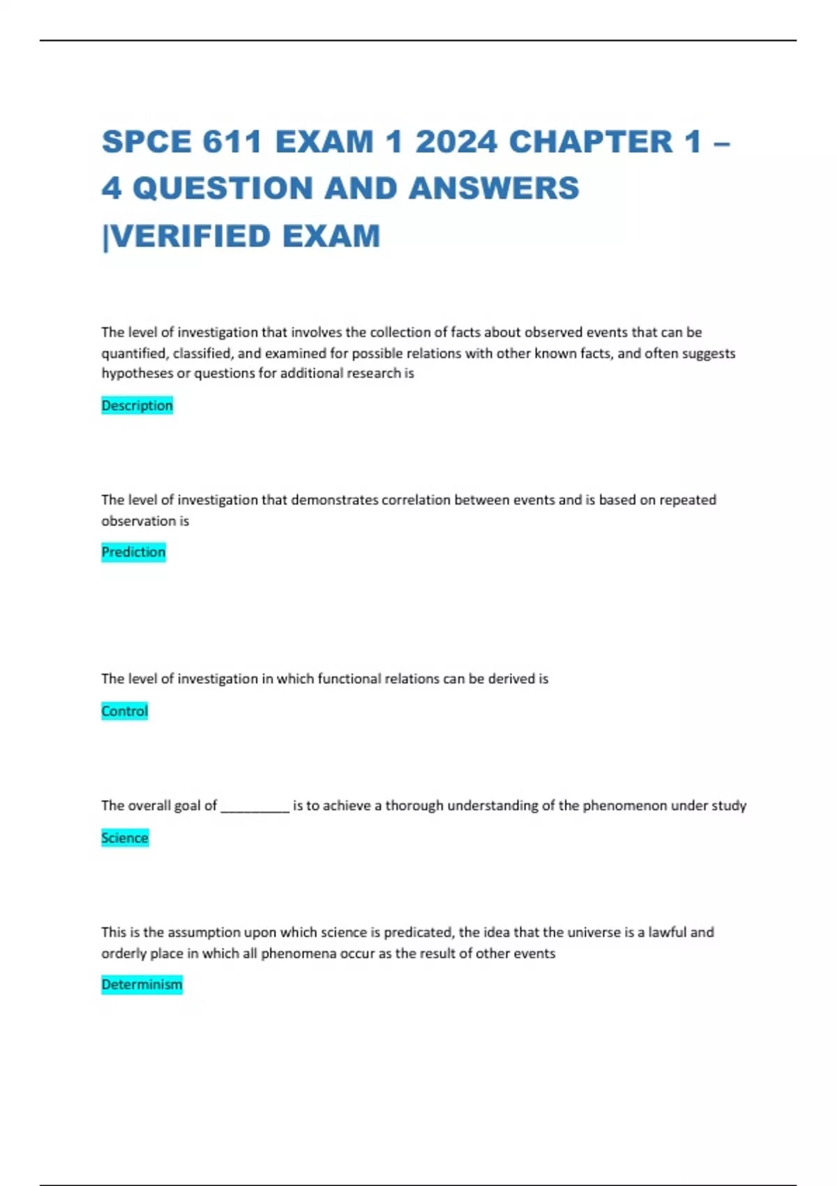 SPCE 611 EXAM 1 2024 CHAPTER 1 – 4 QUESTION AND ANSWERS |VERIFIED EXAM