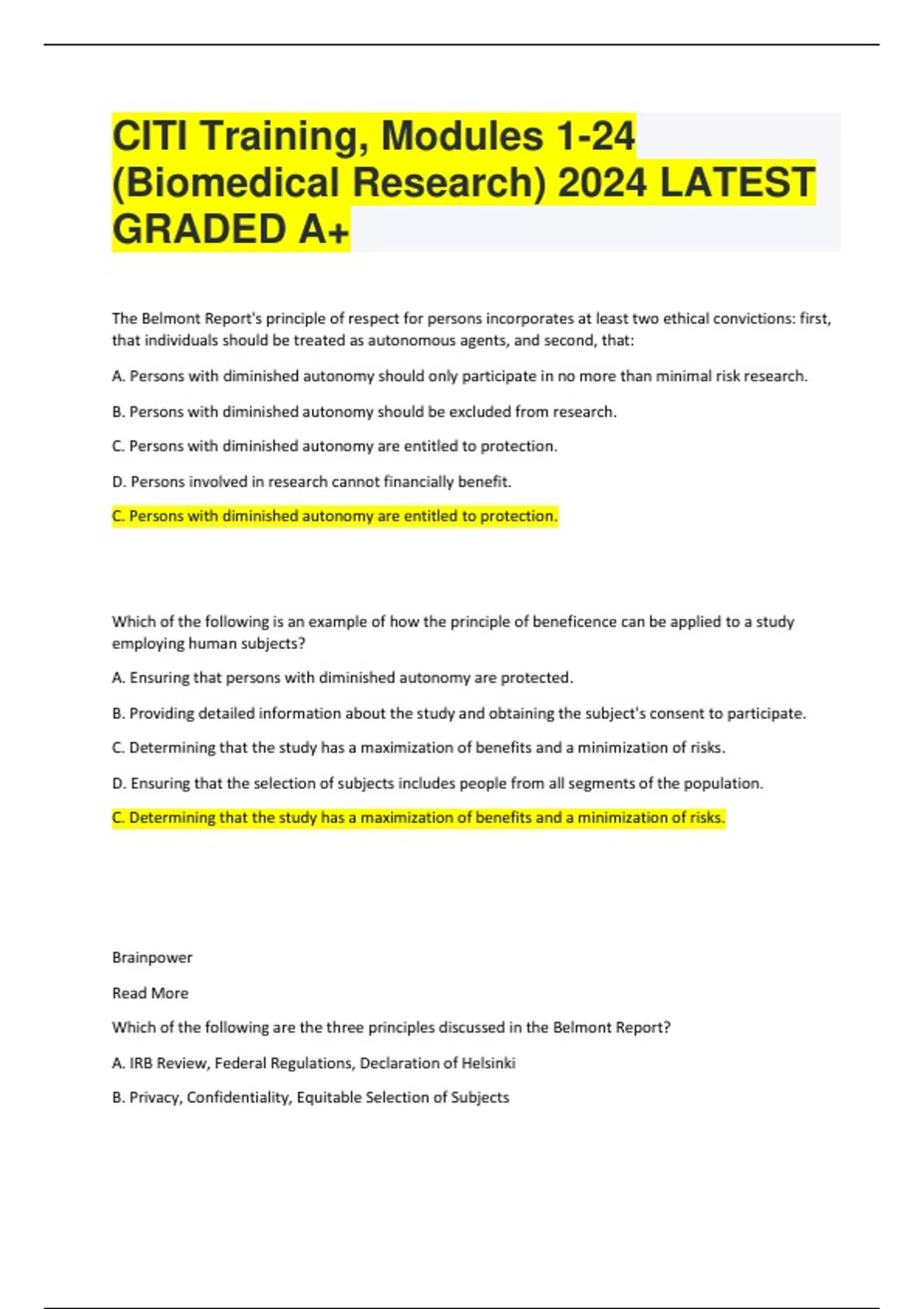 CITI Training, Modules 1-24 (Biomedical Research) 2024 LATEST GRADED A+
