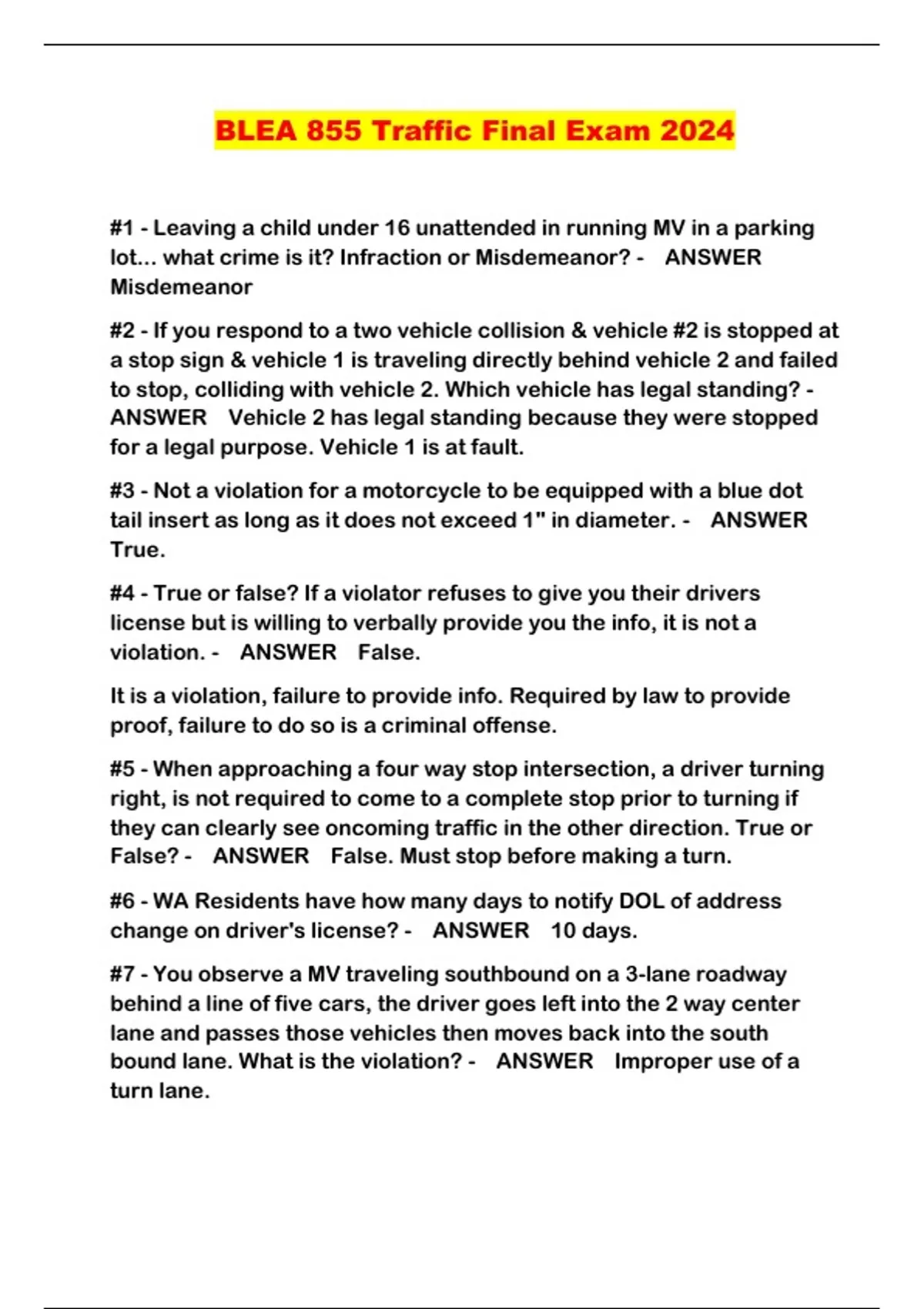 BLEA 855 Traffic Final Exam 2024...