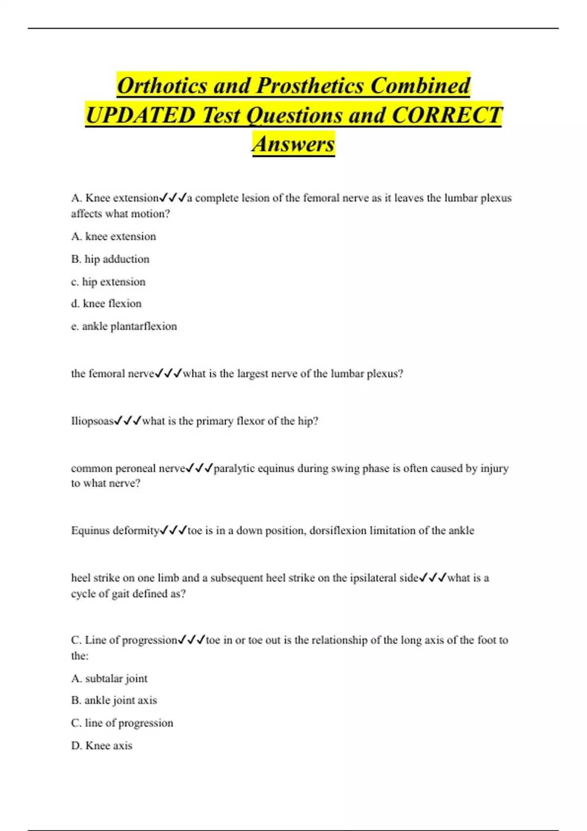 Orthotics and Prosthetics Combined UPDATED Test Questions and CORRECT Answers