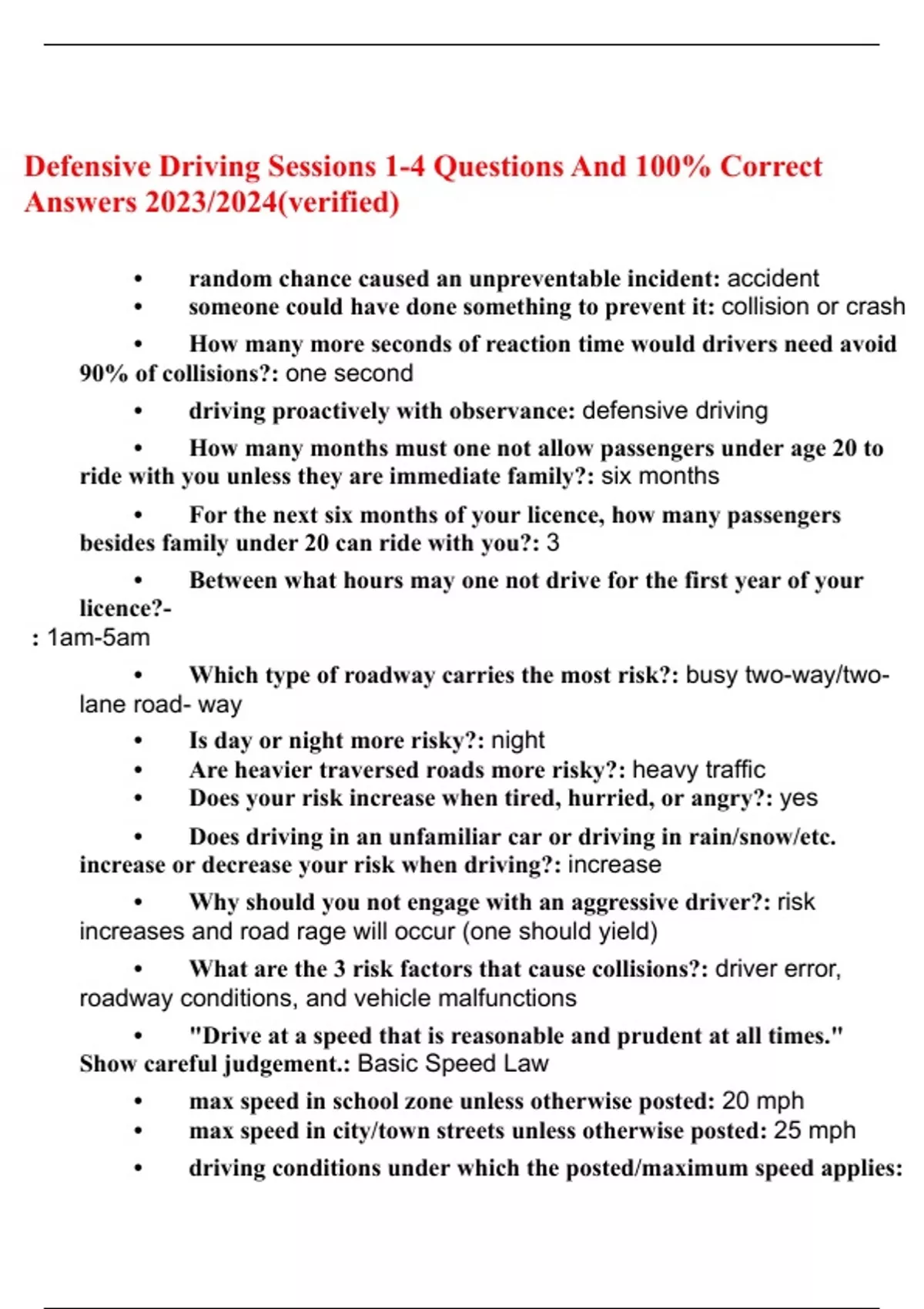 Defensive Driving Sessions 1-4 Questions Verified With 100% Correct Answers