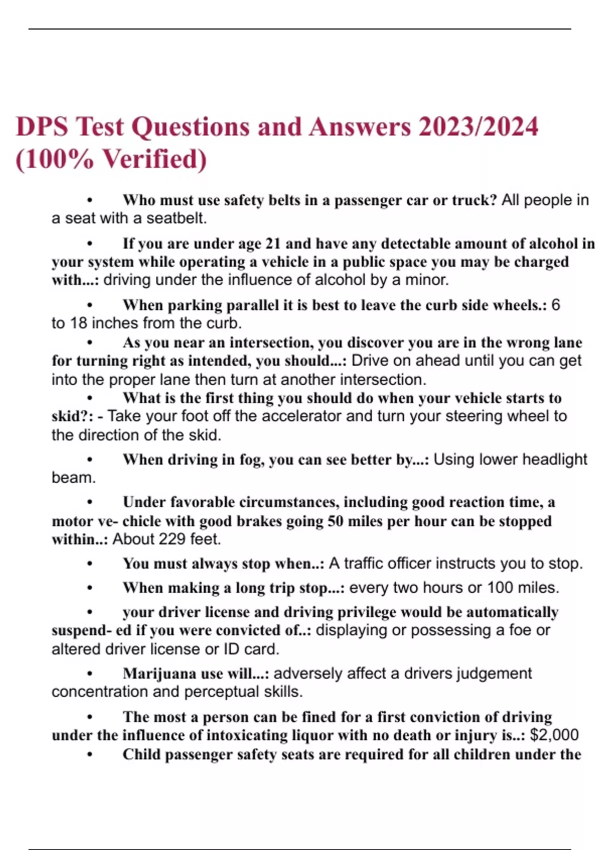 DPS Test Questions and Answers (2023/2024) (Verified Answers)