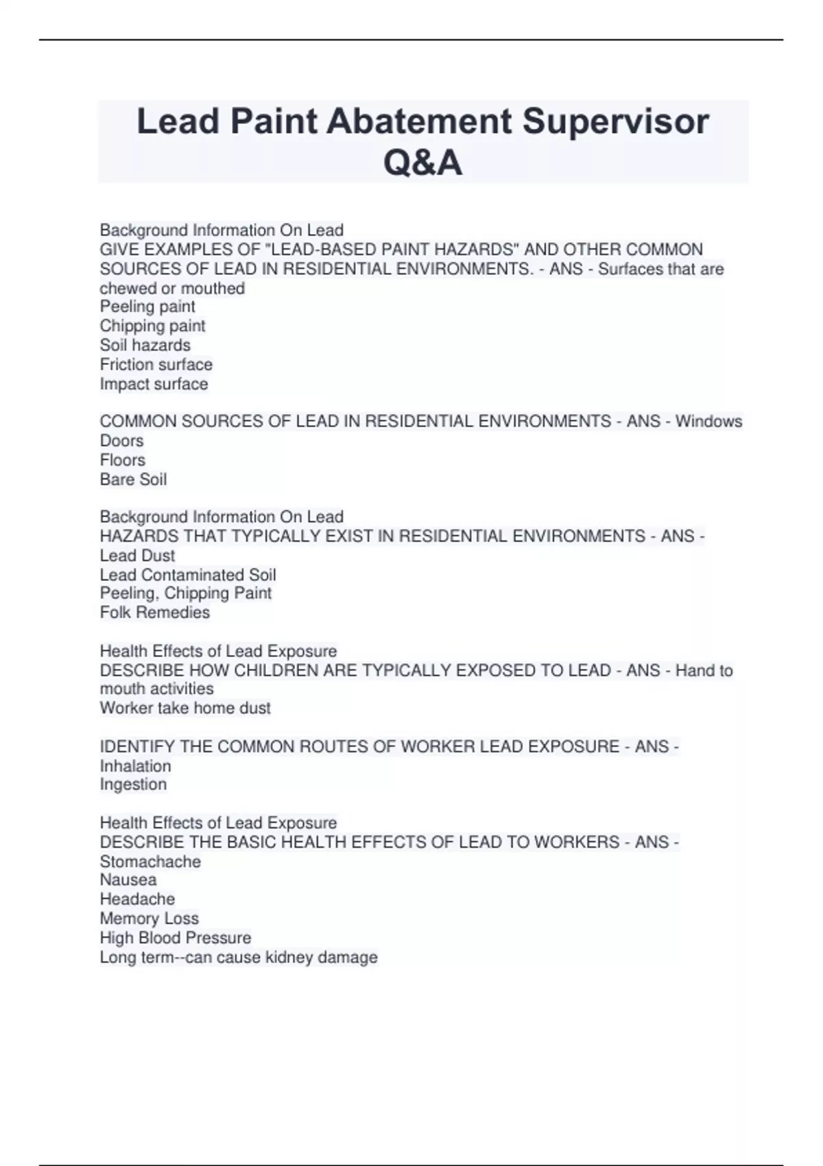 OSHA (29 LEAD CFR 1926-62) - ANS - Someone who can identify hazards