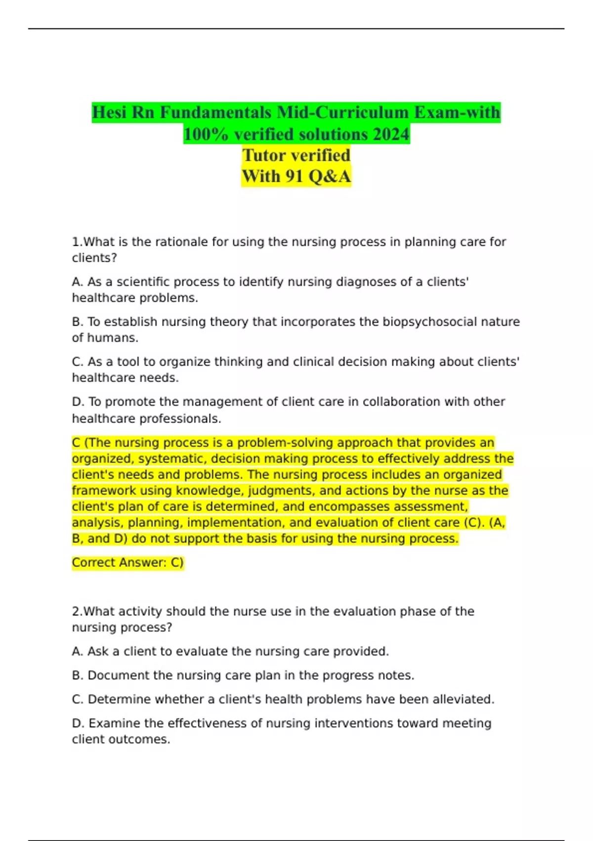 Hesi Rn Fundamentals Mid-Curriculum Exam-with 100% verified solutions 2024