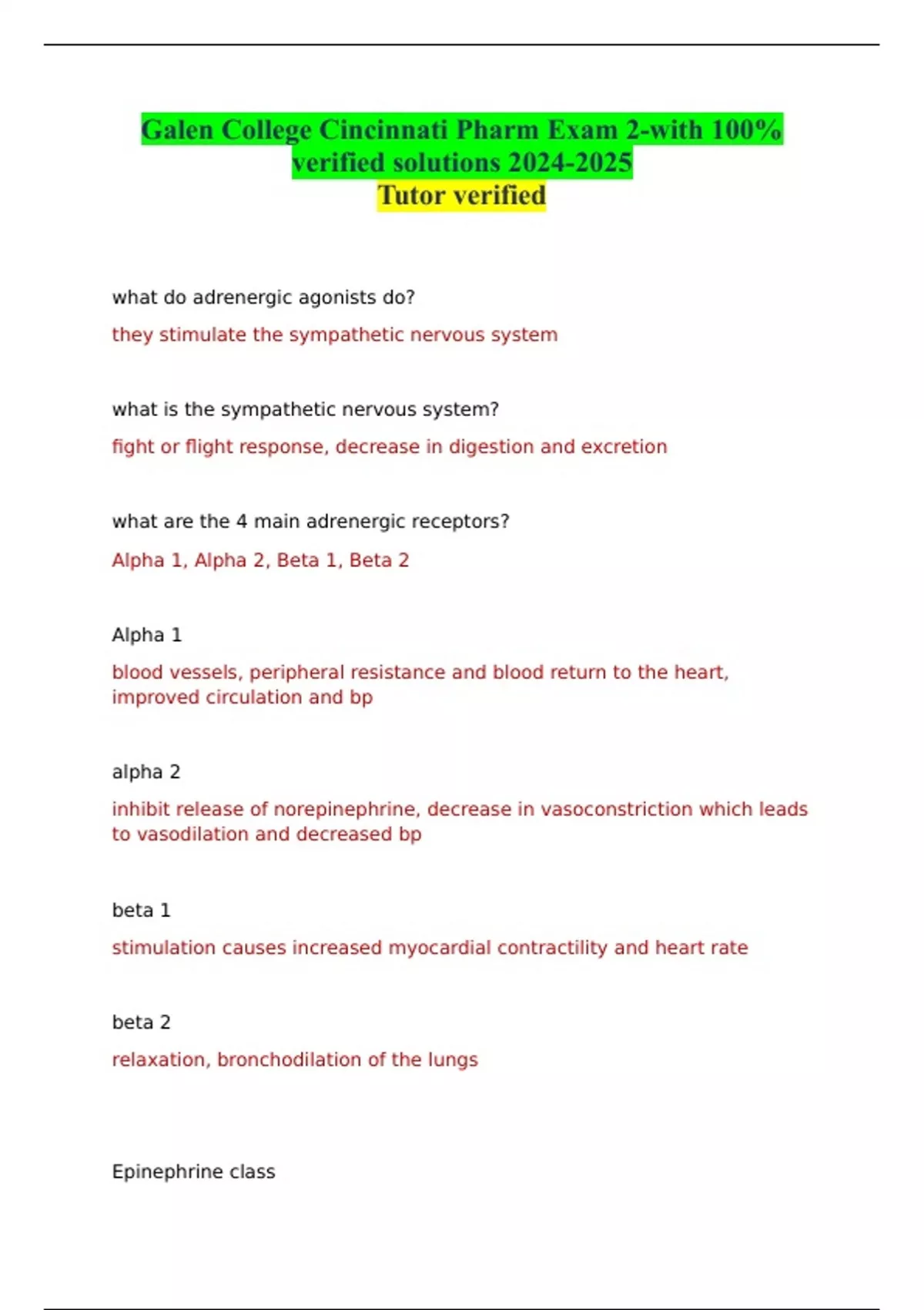 Galen College Cincinnati Pharm Exam 2-with 100% verified solutions
