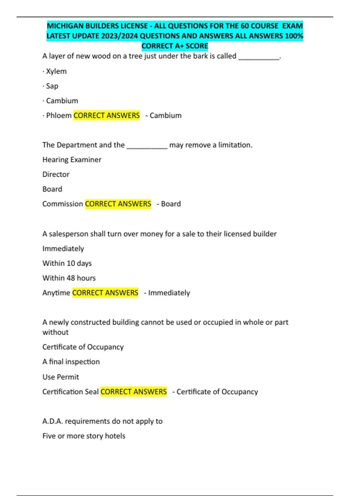 MICHIGAN BUILDERS LICENSE - ALL QUESTIONS FOR THE 60 COURSE EXAM