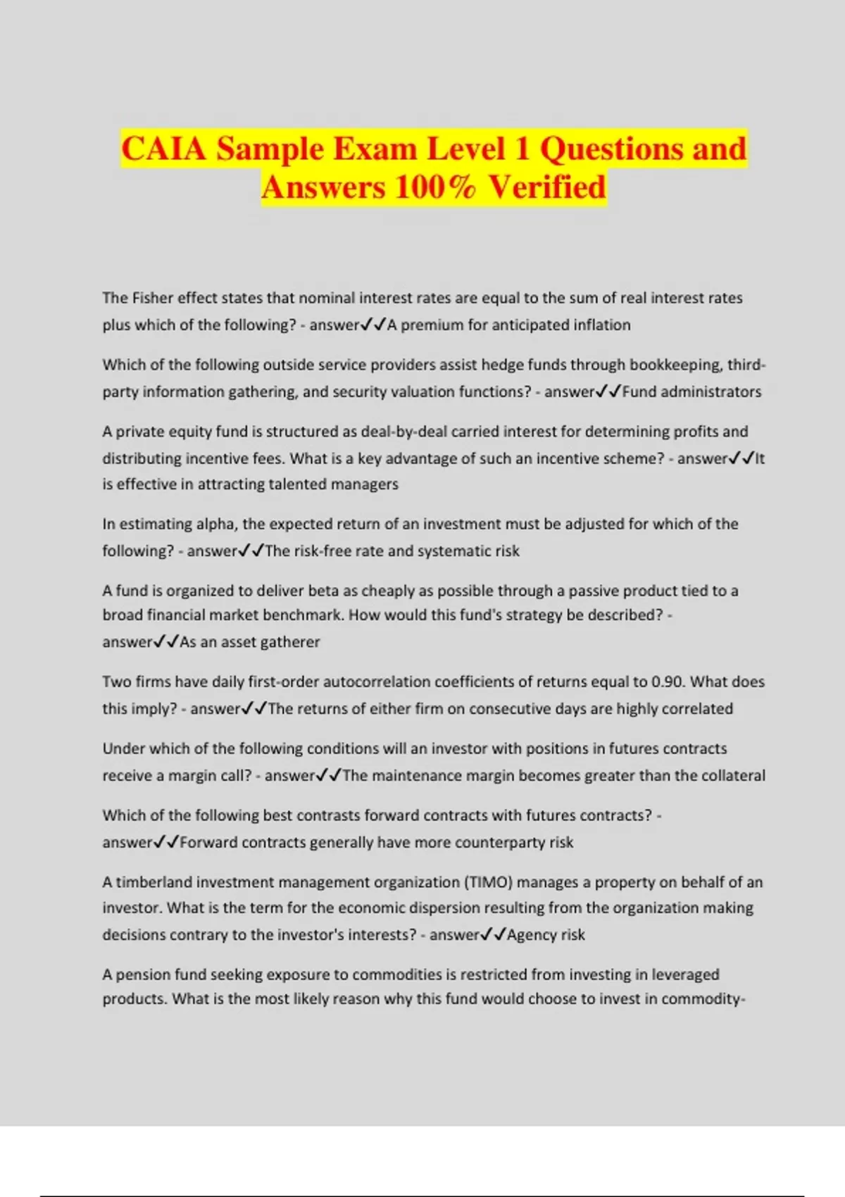 CAIA Sample Exam Level 1 Questions and Answers 100% Verified