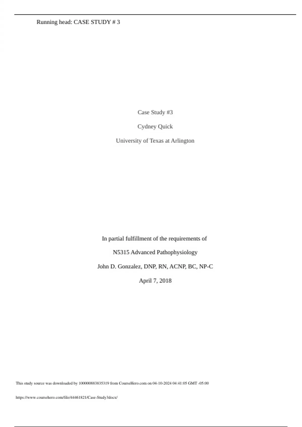 NURS 5334 Case Study #3 /202S4 solved 100%