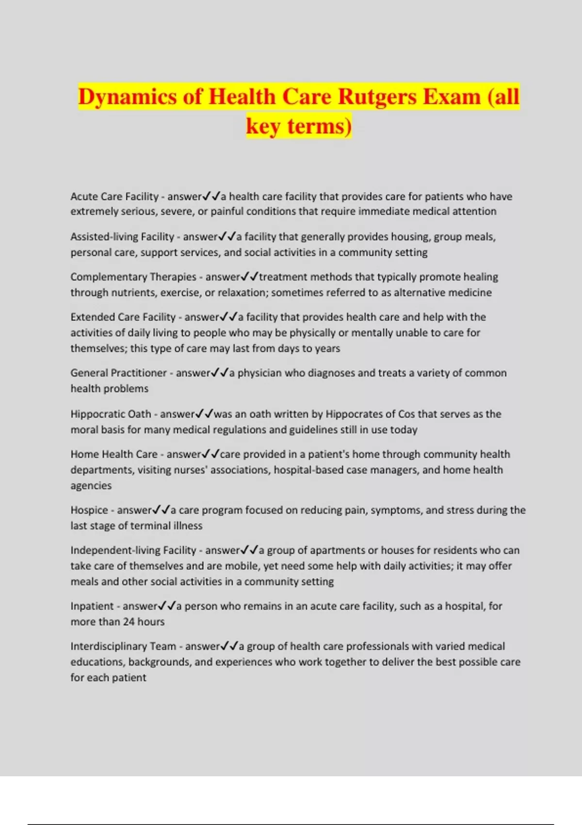 Dynamics of Health Care Rutgers Exam (all key terms)