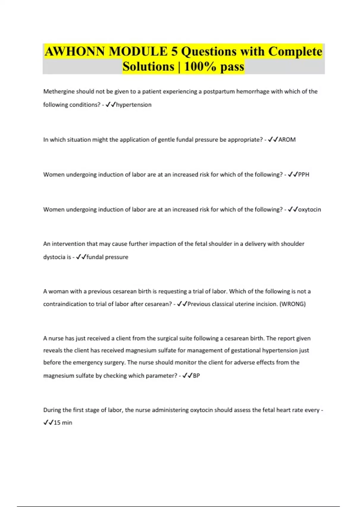 AWHONN MODULE 5 Questions with Complete Solutions | 100% pass