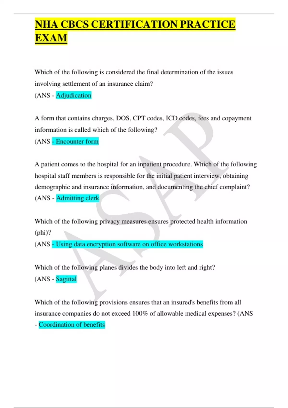 NHA CBCS CERTIFICATION PRACTICE EXAM