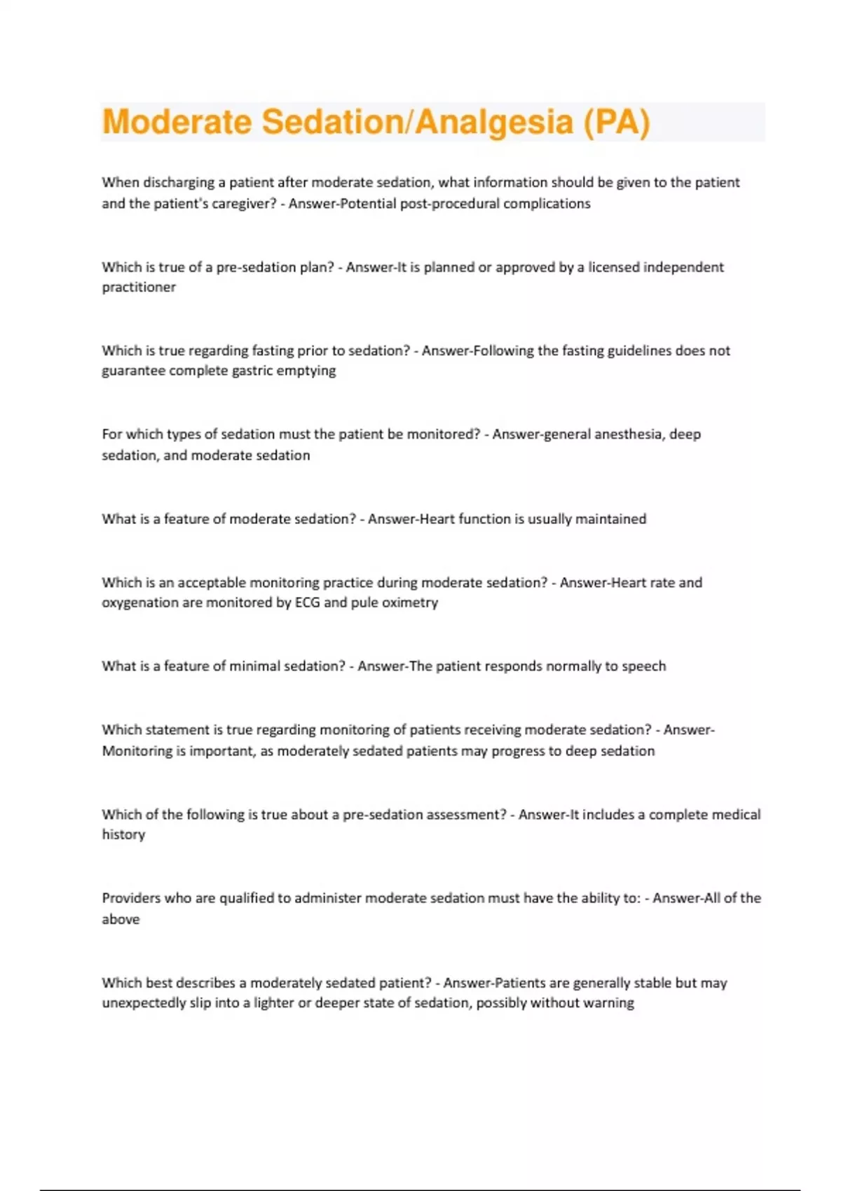 Moderate Sedation/Analgesia (PA) Exam All Possible Questions and Answers with complete solution