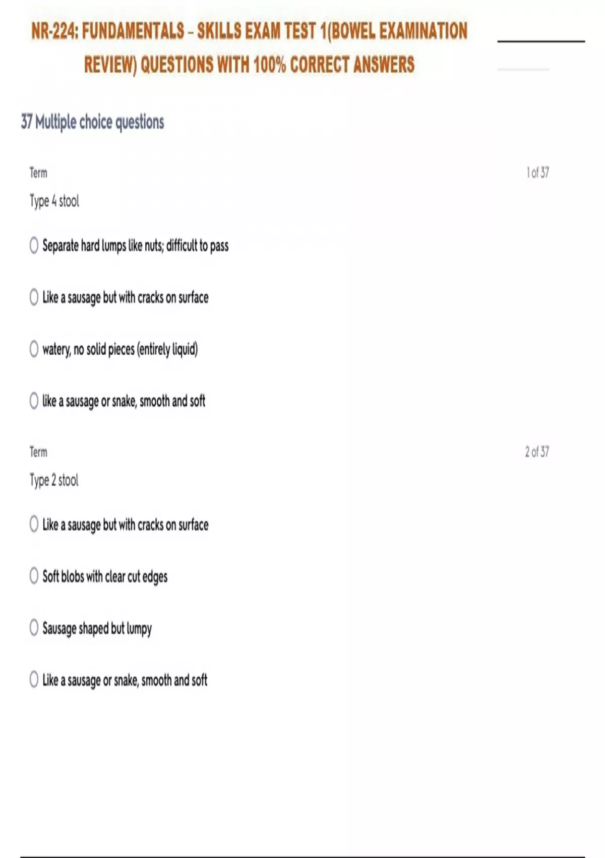 NR-224: FUNDAMENTALS – SKILLS EXAM TEST 1(NURSING ASSESSMENT) QUESTIONS WITH 100% CORRECT ANSWERS