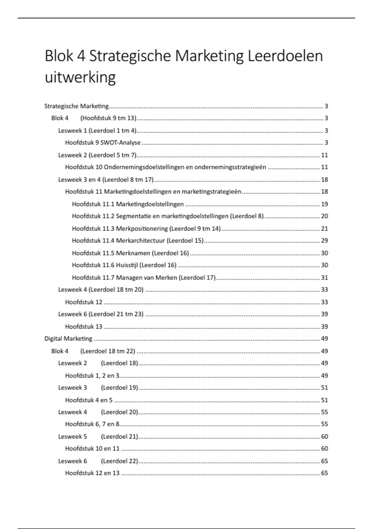 Er zijn leerdoelen gekoppeld aan Strategische Marketing in blok 4, echter staat dit niet vermeldt bij de